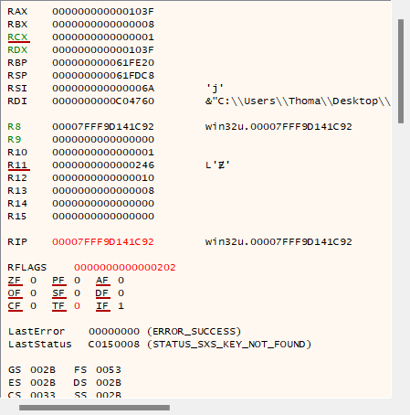 If we look at the stack. The first 32 bytes are reserved for RCX, RDX, R8, R9. These 4 registers will be used to store arguments of our function. We need more arguments, we need to add these on the stack at the address stack pointer (rsp) + 0x28 (hex). We don’t need it for the moment because we’ll give only 2 arguments to NtUserGetAsyncKeyState and NtUserGetKeyState. However, it will be interesting for other applications like keyboard, screenshotting, etc.